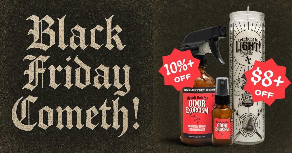 Odor Exorcism is guaranteed to expel demonic odors, evil aromas, satanic scents & unholy emissions.