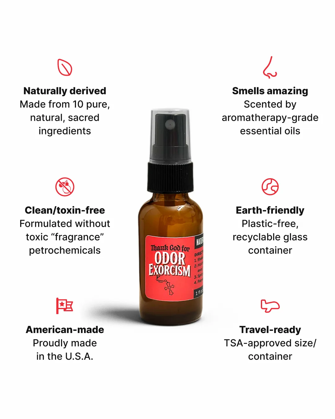 An odor eliminator of divine freshness. Spray it on anything that smells possessed.